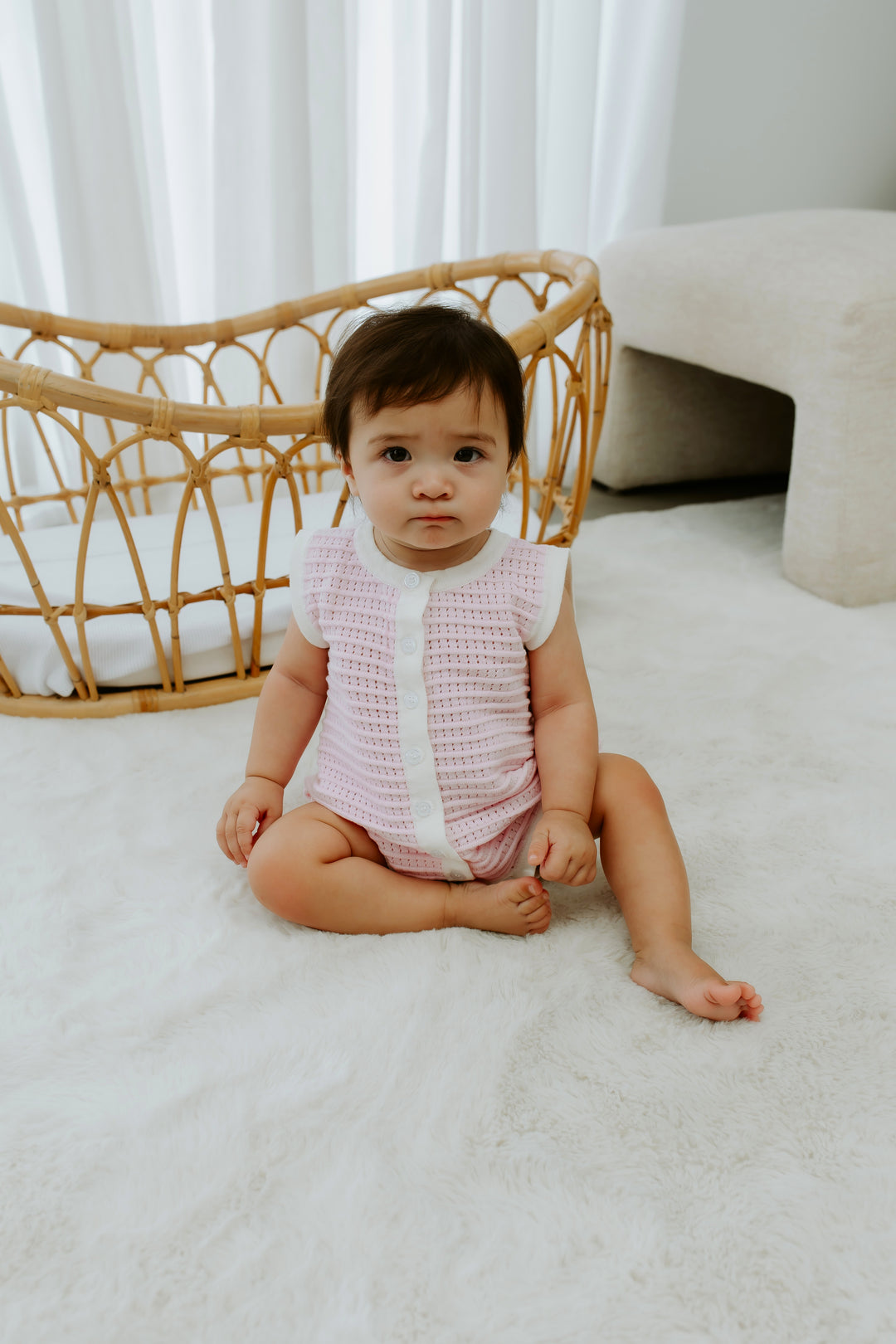 Pointelle Knit Romper | Classic Pink